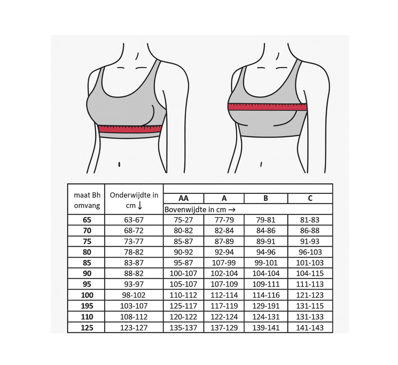 3. Noteer de Meting: Noteer het getal waar het lint elkaar ontmoet. Dit is je borstomvang